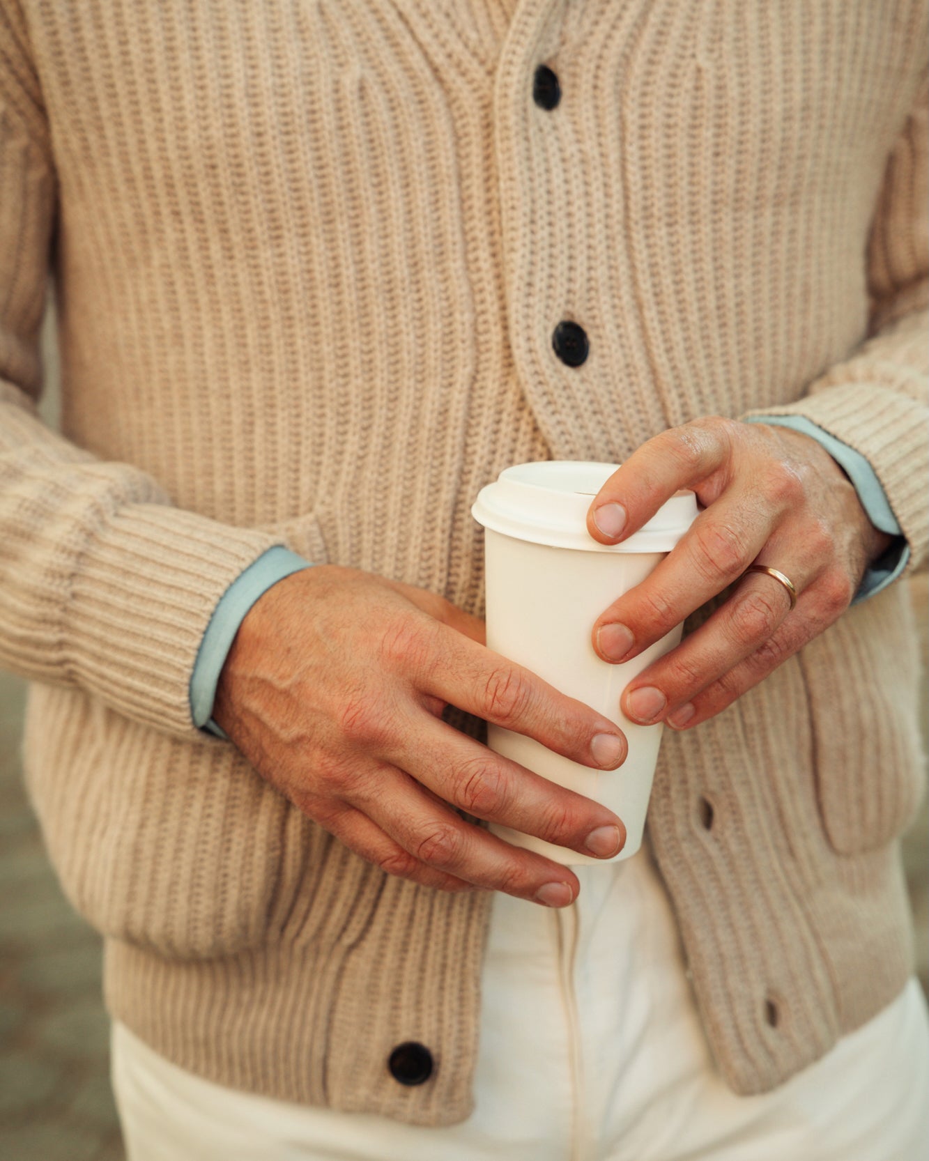 Made in a generous rib knit that allows for natural mobility, it features a hidden neck-loop closure, flippable collar, and side pockets, which make it a perfect alternative when you want to let your outerwear rest for a day.