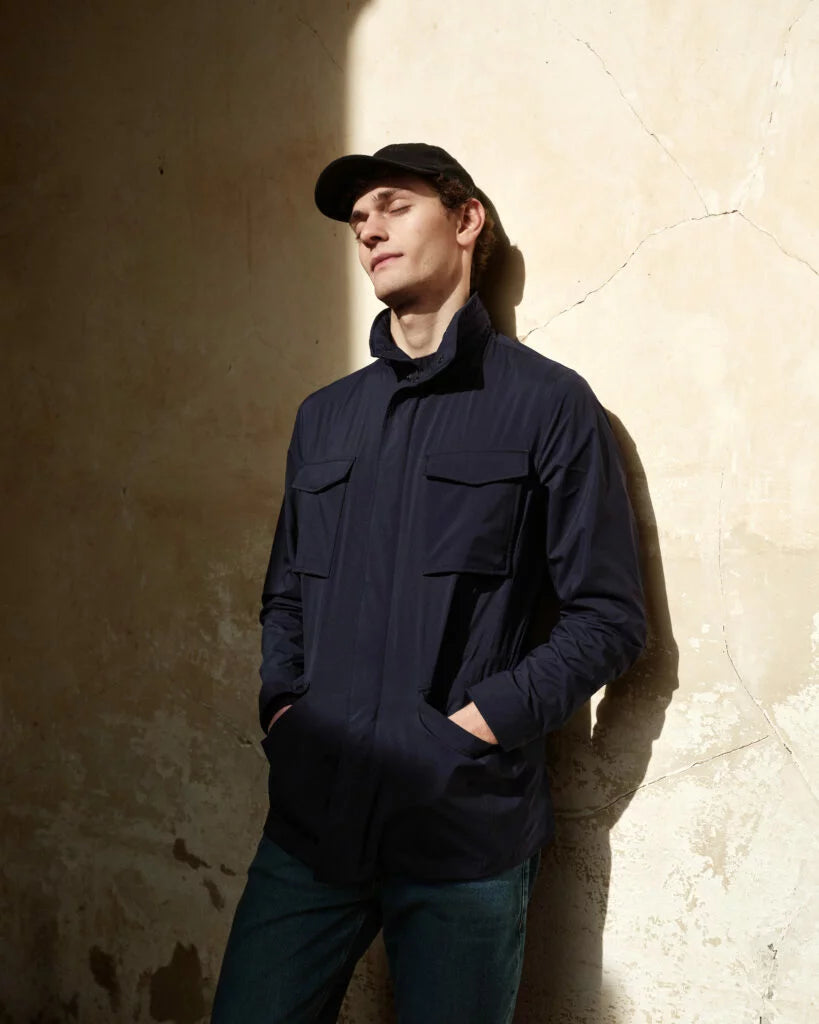 Experience an elevated aesthetic and feel with silk infused into our seasonal jackets and hues found in Mediterranean nature represented in the colour palette. An elegant and natural palette, infused with a touch of refinement. The silk adds its fine properties and breathability but also a subtle hint of shine reminiscent of sunlight reflected on the ocean.
