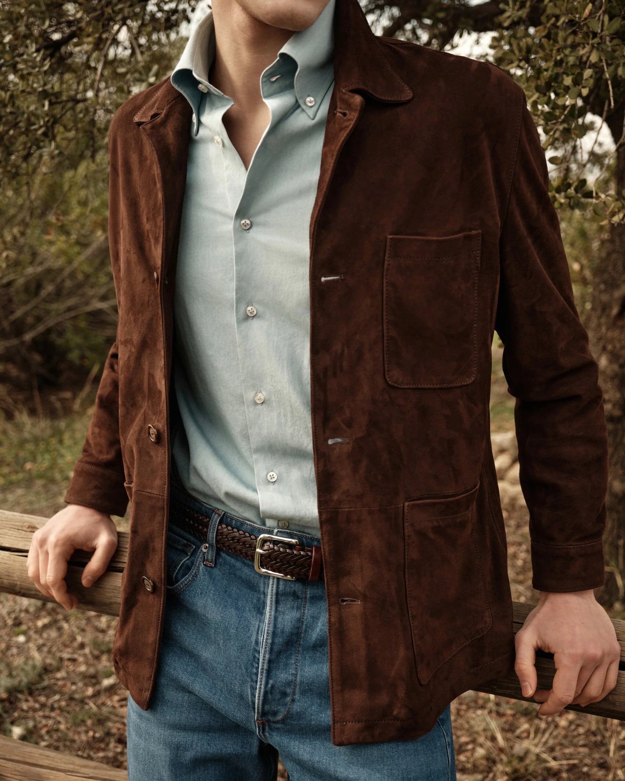 The three-pocket suede overshirt has been refined for decades and is for many reasons a beloved staple in our essential collection. Featuring convenient patch pockets and a proportional shirt collar that can be effortlessly folded up for a more relaxed look. Crafted in Italy from a buttery-soft goat suede. To us, it represents the perfect jacket for casual wear.