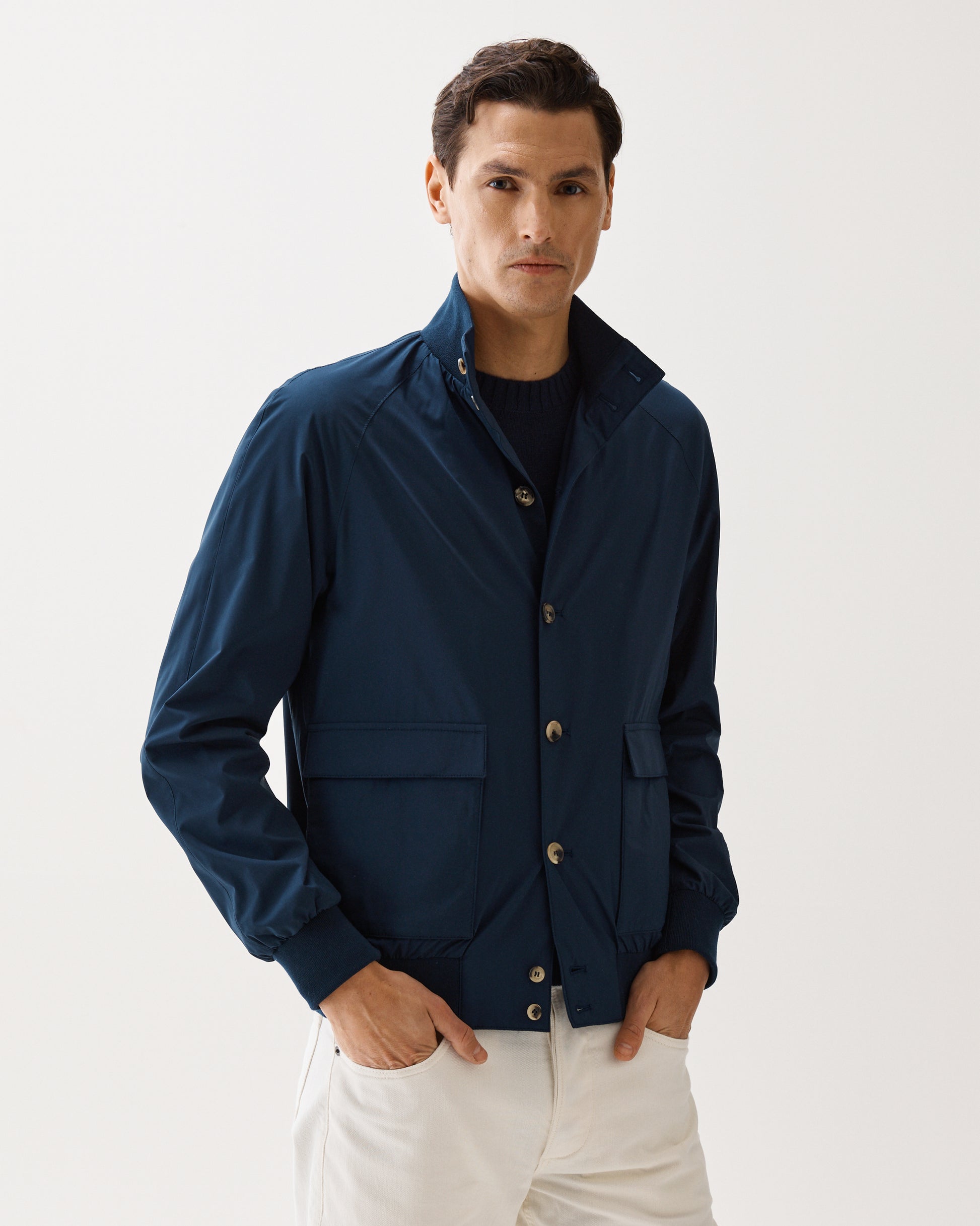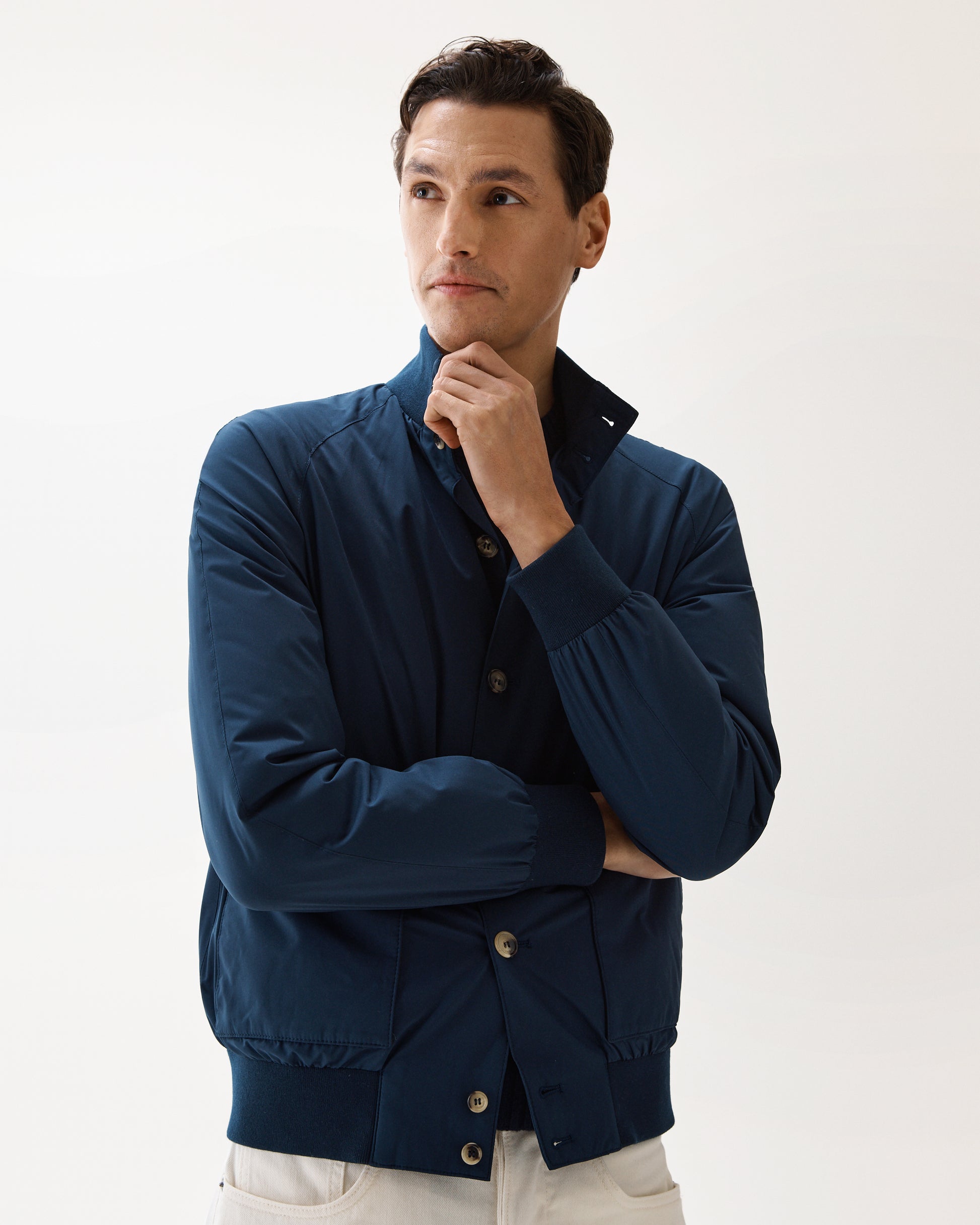 Our A1 bomber jacket features a more comfortable raglan shoulder construction and combined with its light weather proof shell the comfort is unbeatable. Designed with enough pockets for comfortably carrying your daily essentials with large side pockets for quick access to your belongings or to just rest your hands in. Model is 187cm tall and wears size 50.