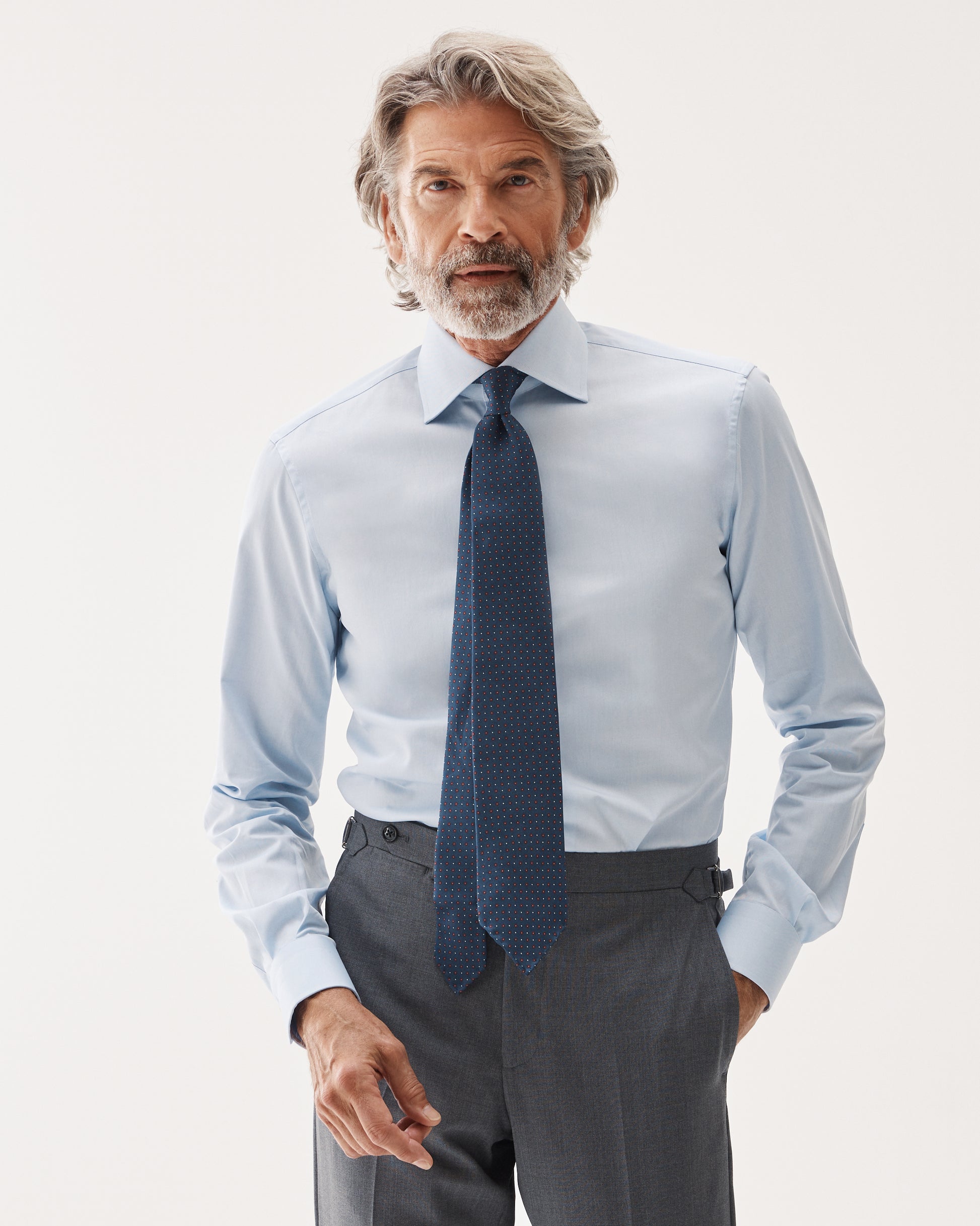 Our updated Essential Shirt collection features a contemporary fit that’s perfectly balanced—not too slim, not too loose. Just right. Designed to be the ideal modern shirt, we’ve carefully made every detail, from collar shapes to construction, prioritizing both style and functionality. The collars work perfectly with or without a tie, while the split yoke back provides added flexibility for greater comfort and ease of movement.