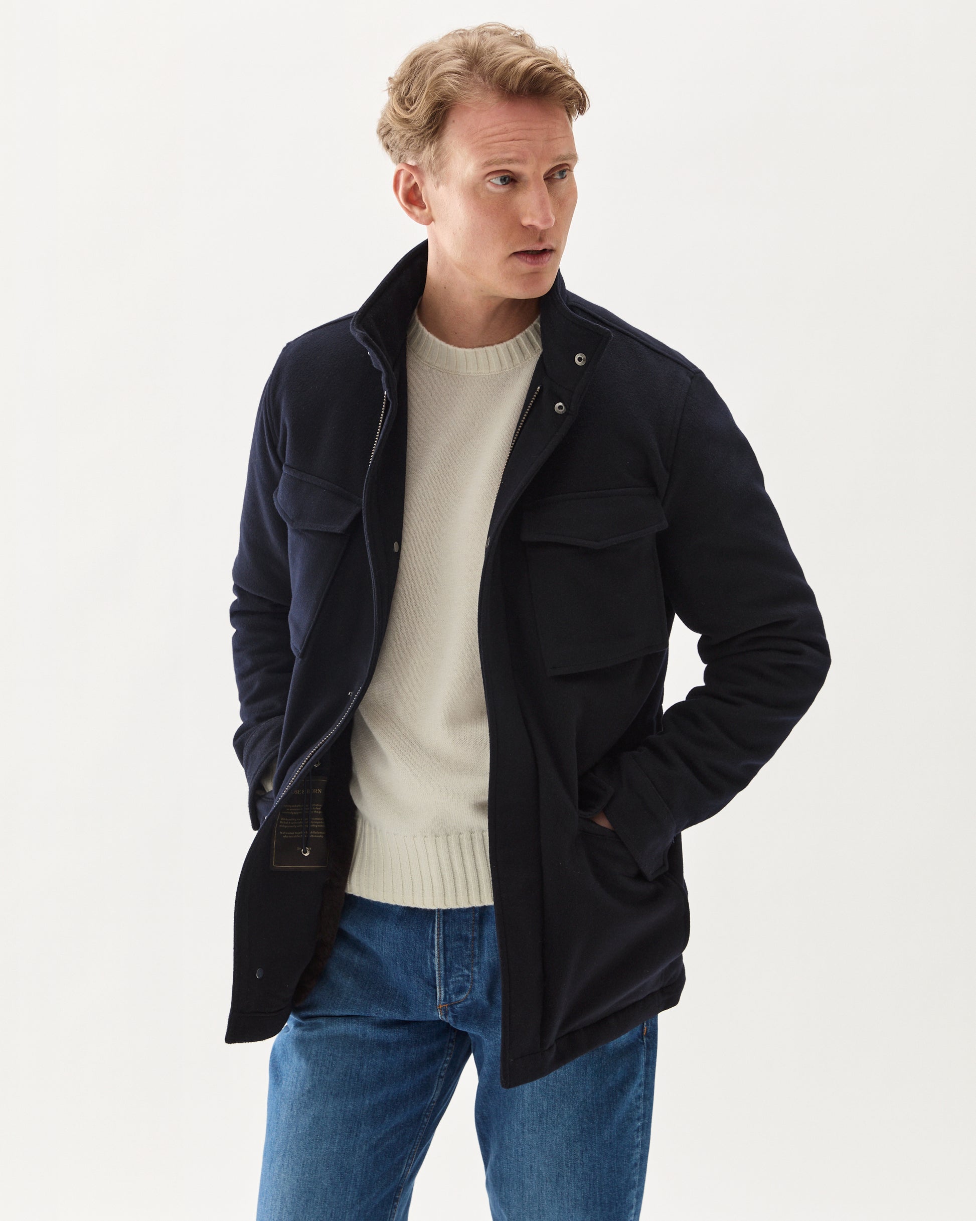 The jacket moves effortlessly between formal tailoring and more relaxed combinations. Worn over a suit or layered with heavy knits and sneakers, it remains equally composed.