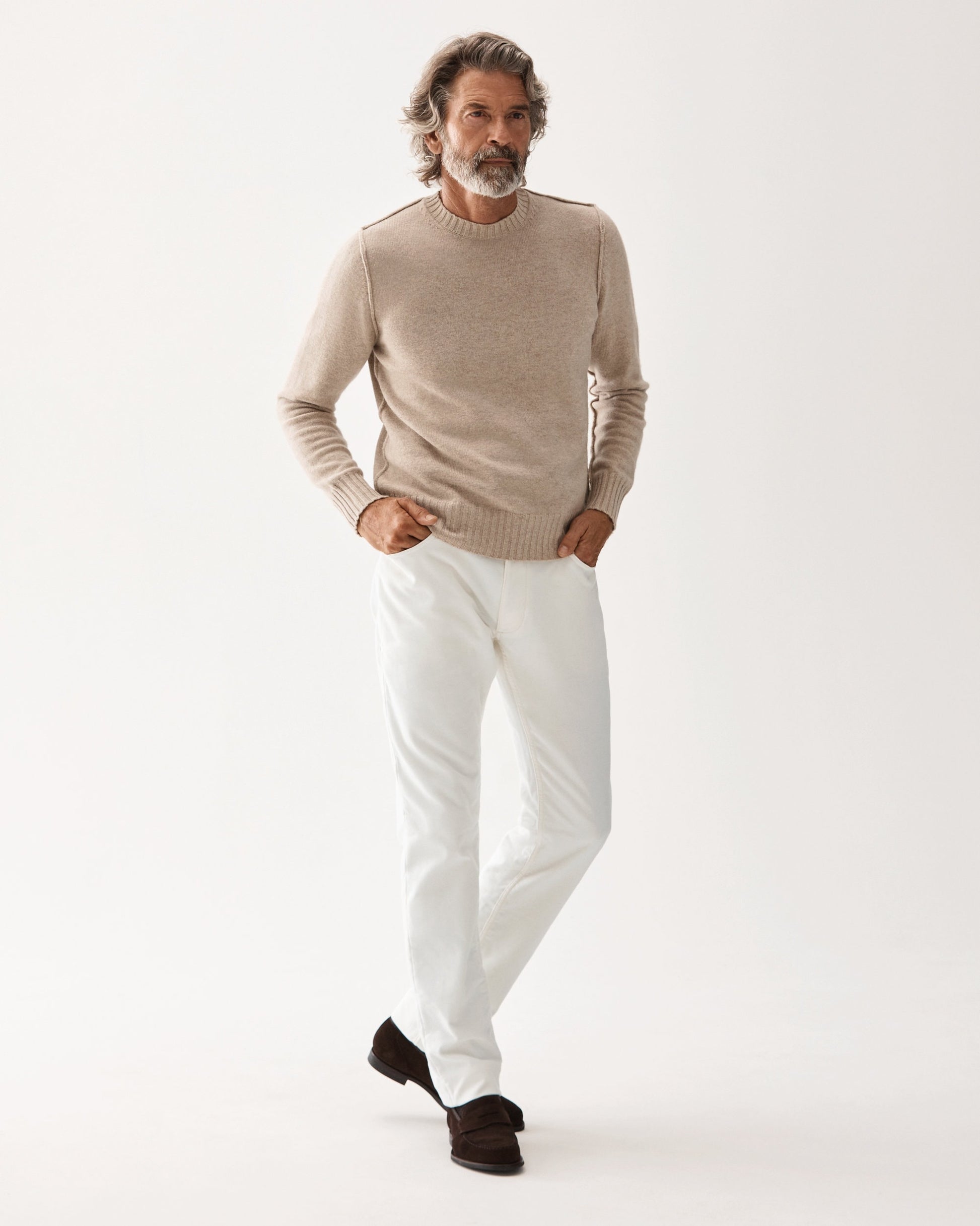 The moleskin trouser is made from a soft brushed cotton fabric that keeps you well tempered throughout the colder seasons. Our jeans & 5-pocket trousers are all crafted using Italian fabrics & Swiss hardware. They come in a classic 5-pocket style with a slim leg made to be worn with almost anything year-round. Model is 187cm tall, weighs 75kg and wears size 33.