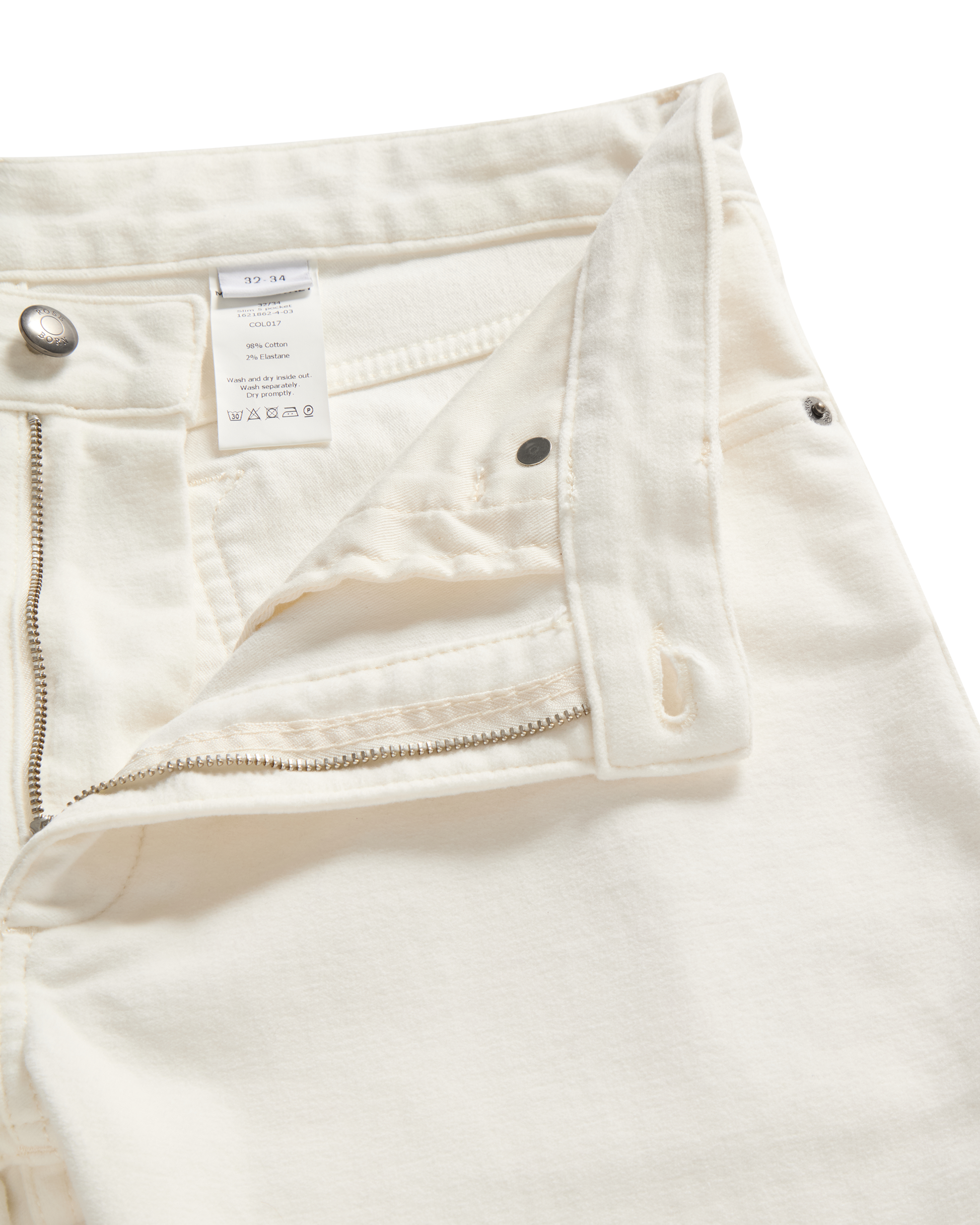 - 98% cotton, 2% elastane