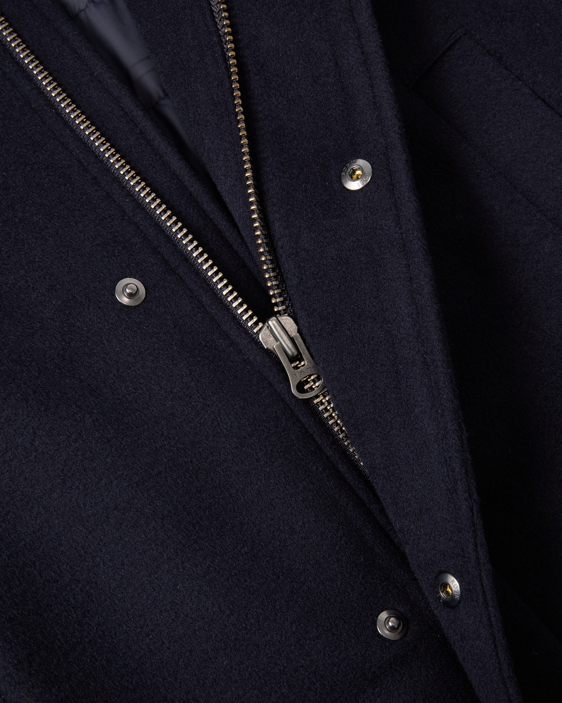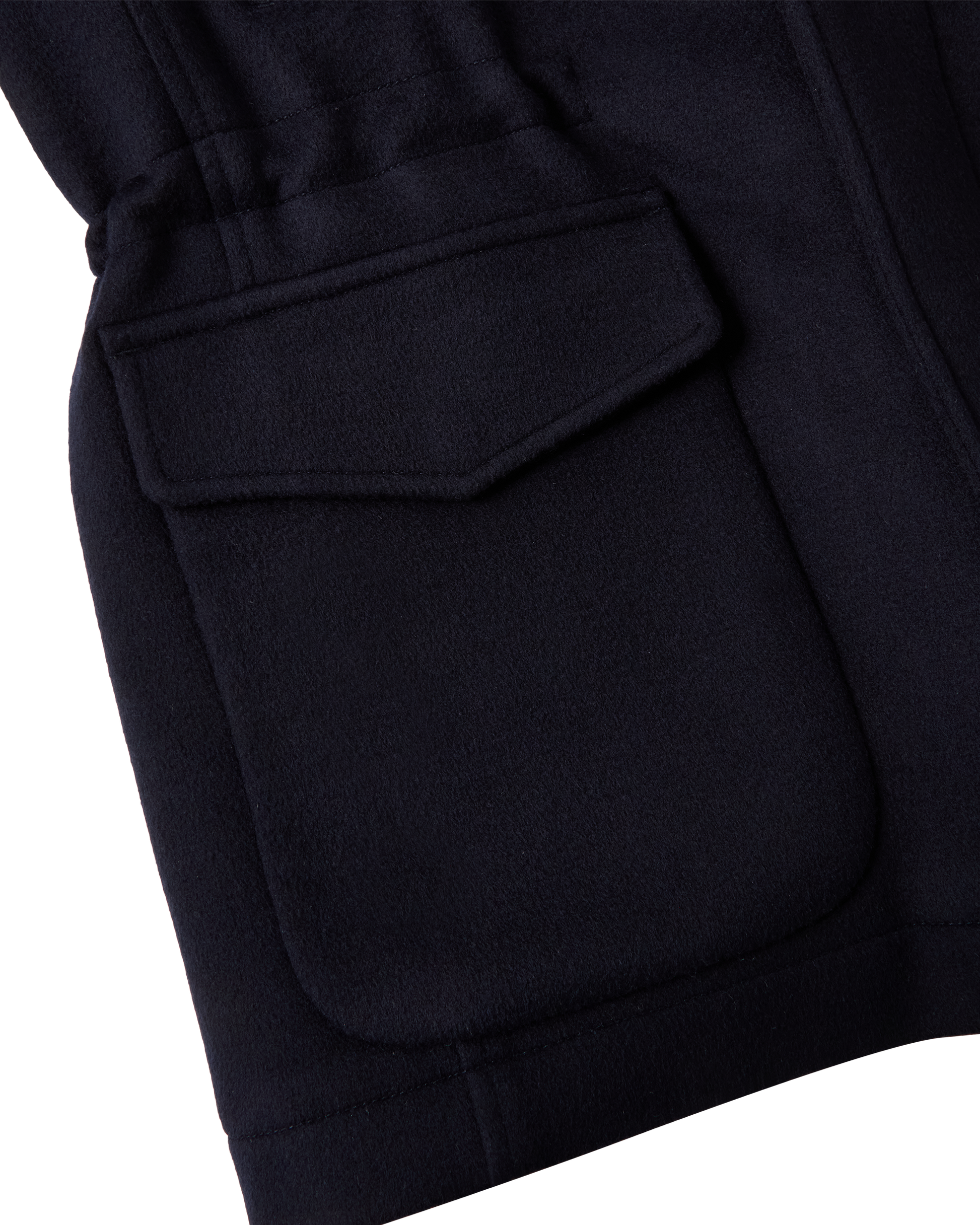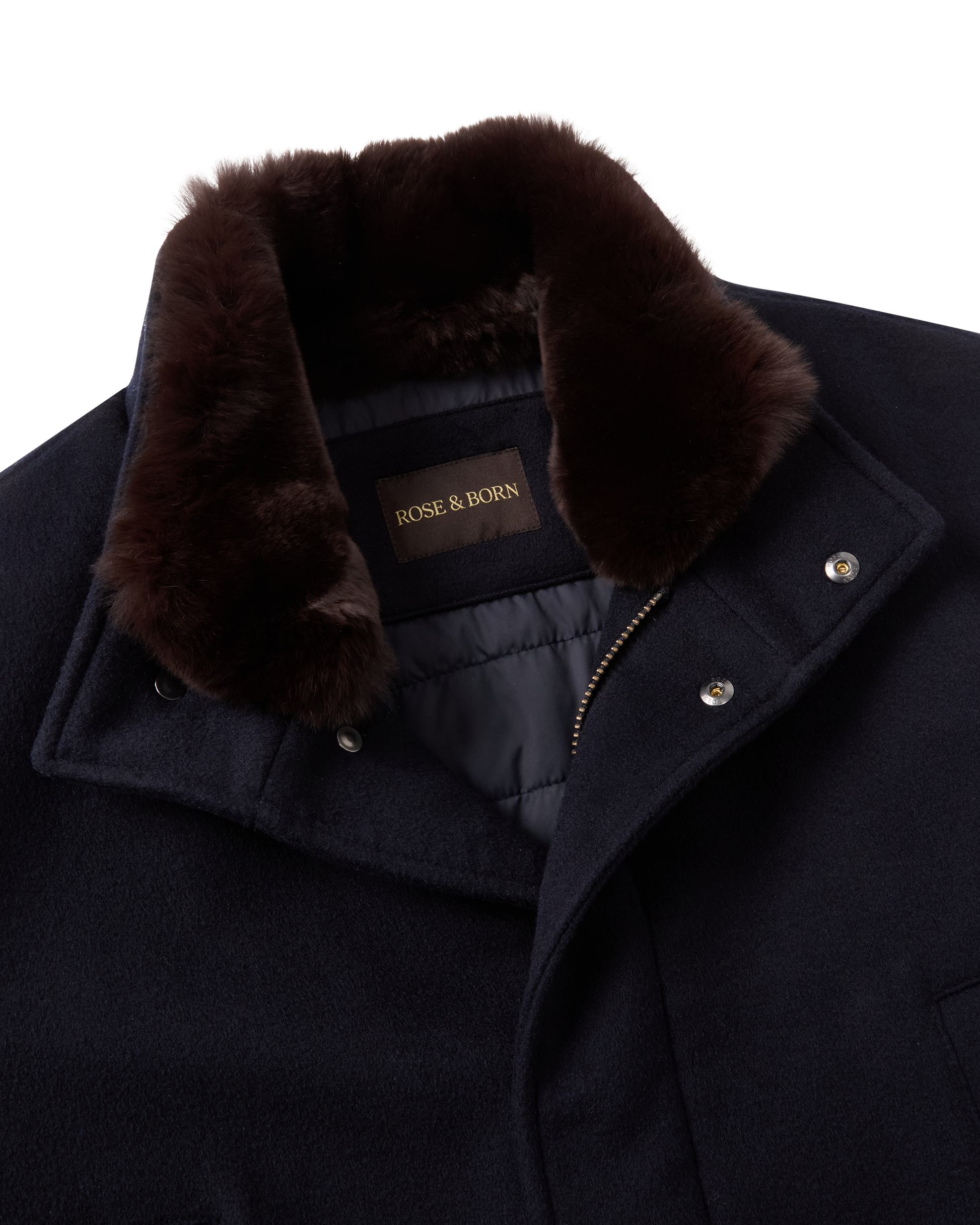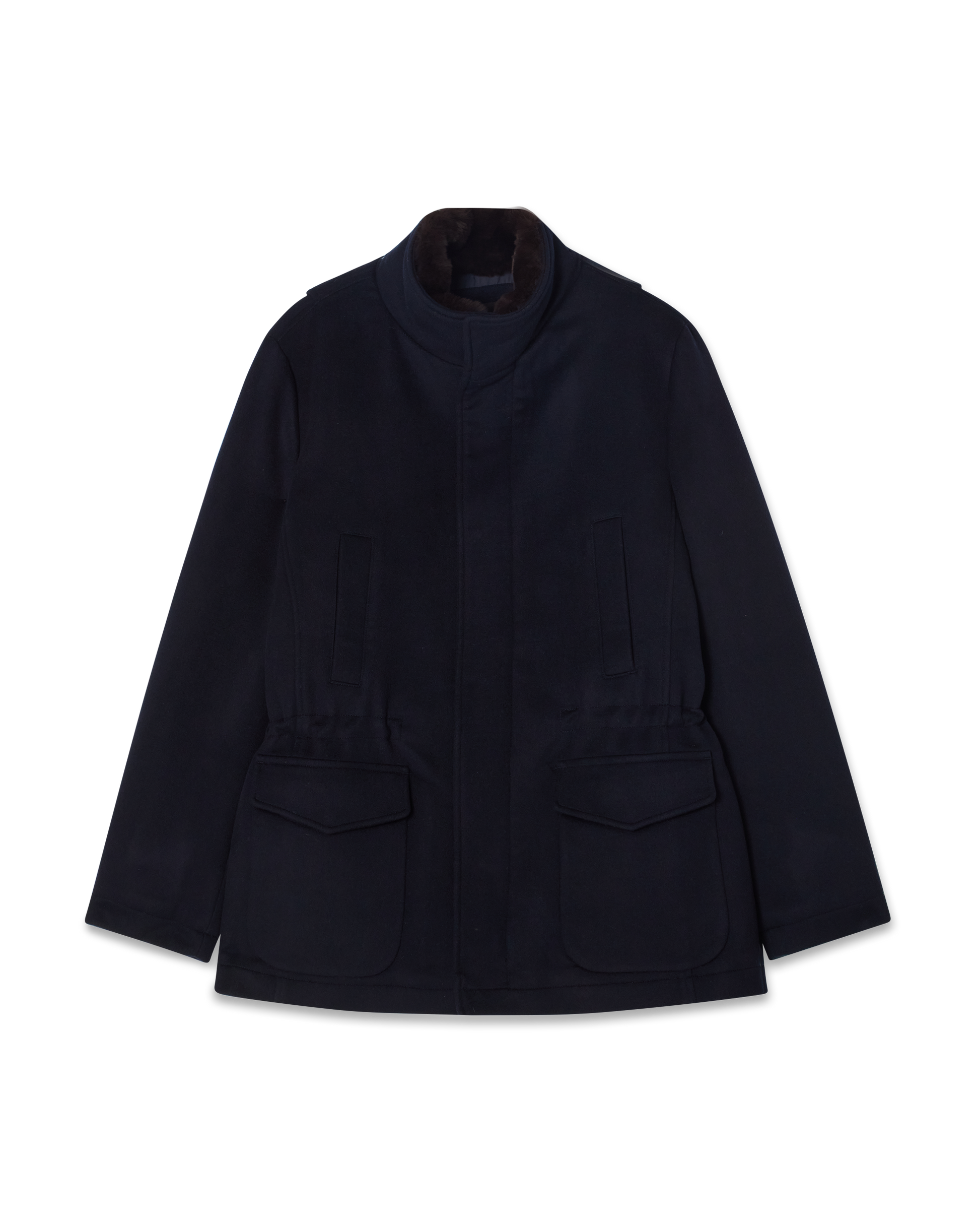 Our signature Field jacket draws inspiration from iconic hunting wear, reimagined as a functional yet city-friendly option. Crafted from water-repellent wool with a soft yet sturdy feel, it features a luxurious removable fur collar, an action back for enhanced movement, and generously sized pockets. Designed with a roomy fit, it’s intended to be worn with a cinched waist for a tailored look. Model is 187cm and wears size 50.