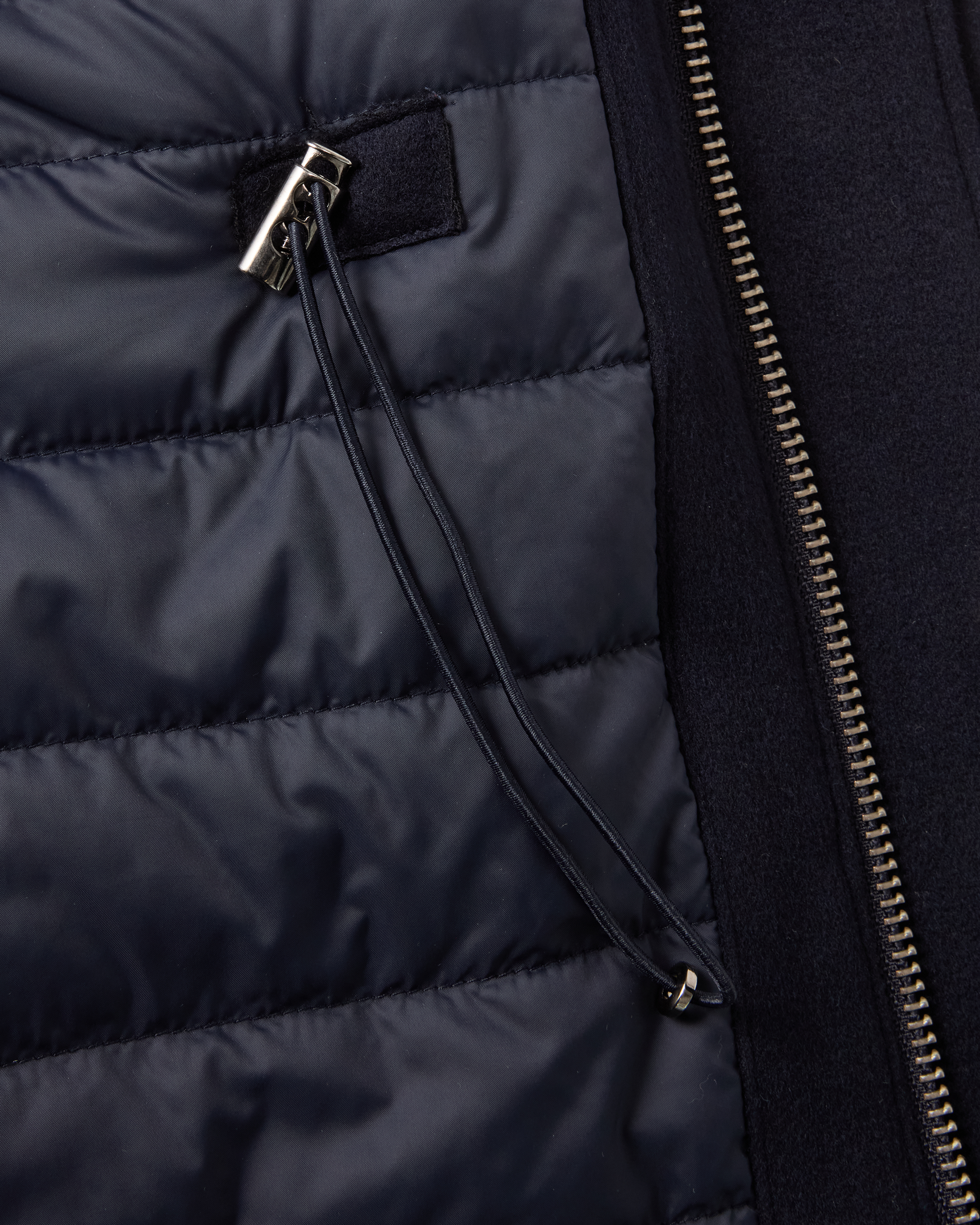 Our garments with a weatherproof coating are designed to combine protection and comfort. This treatment makes them windproof and water-repellent, shielding you from the elements without compromising on the natural feel of the fabric. Unlike membrane alternatives, this method preserves the garment's softness and breathability. The coating remains effective for up to 12 dry-cleaning cycles, ensuring long-lasting performance while maintaining an elegant appearance. Ideal for unpredictable weather, it offers functional sophistication without sacrificing style.