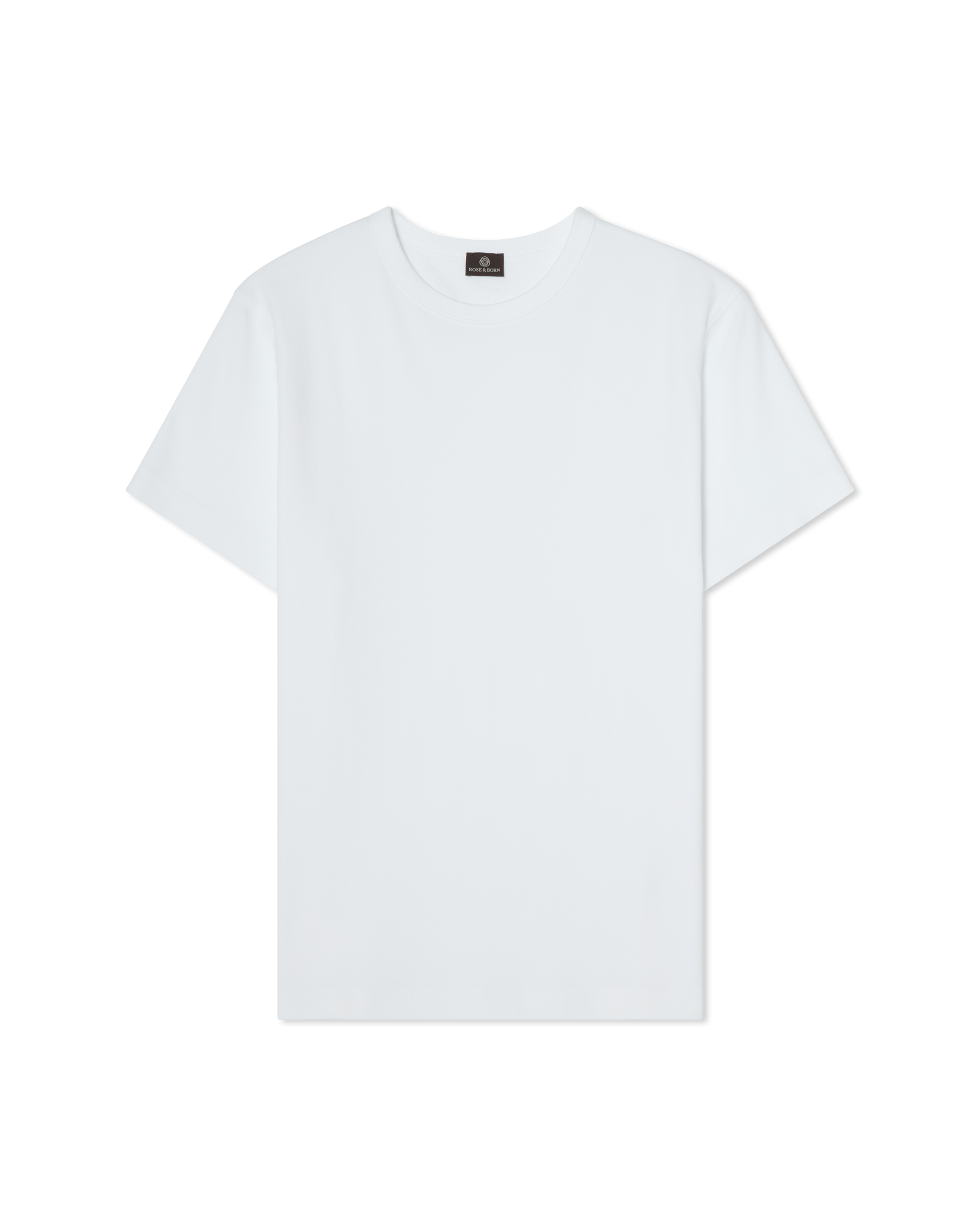 The latest complement to our loungewear series, this fine cotton T-shirt is crafted from mid-weight cotton with a soft hand and a relaxed fit. Subtle side vents are added for enhanced comfort and improved drape. It is finished in our most iconic style with a semi-snug, self-fabric collar. Our go-to staple to wear with shirts, sweat sets, or Vista sunglasses.