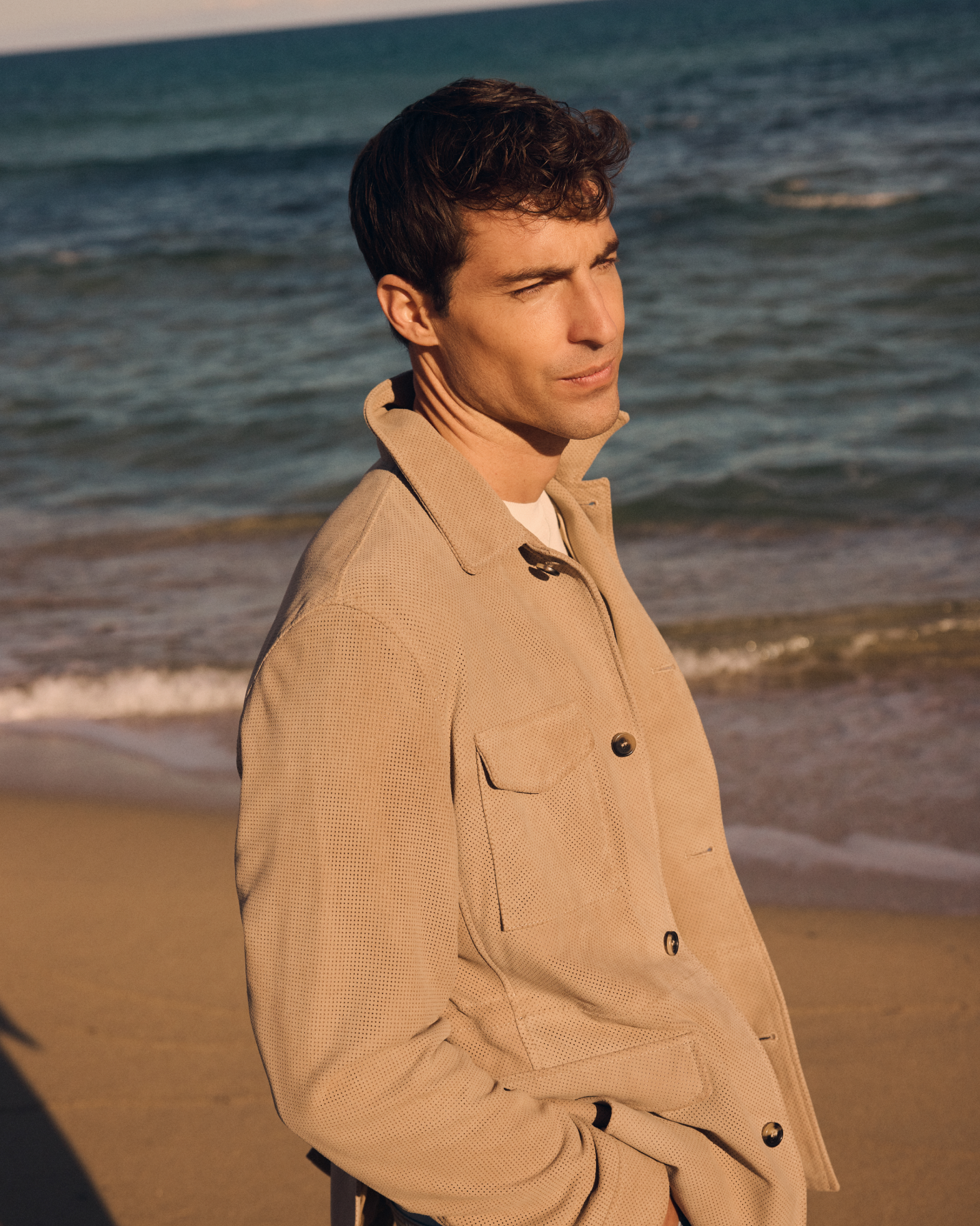 Our perforated suede safari jacket is designed for pure ease during the warmer months. Made from buttery smooth Italian goat suede, it is then perforated using rare machinery available to only a select few manufacturers across Italy.
