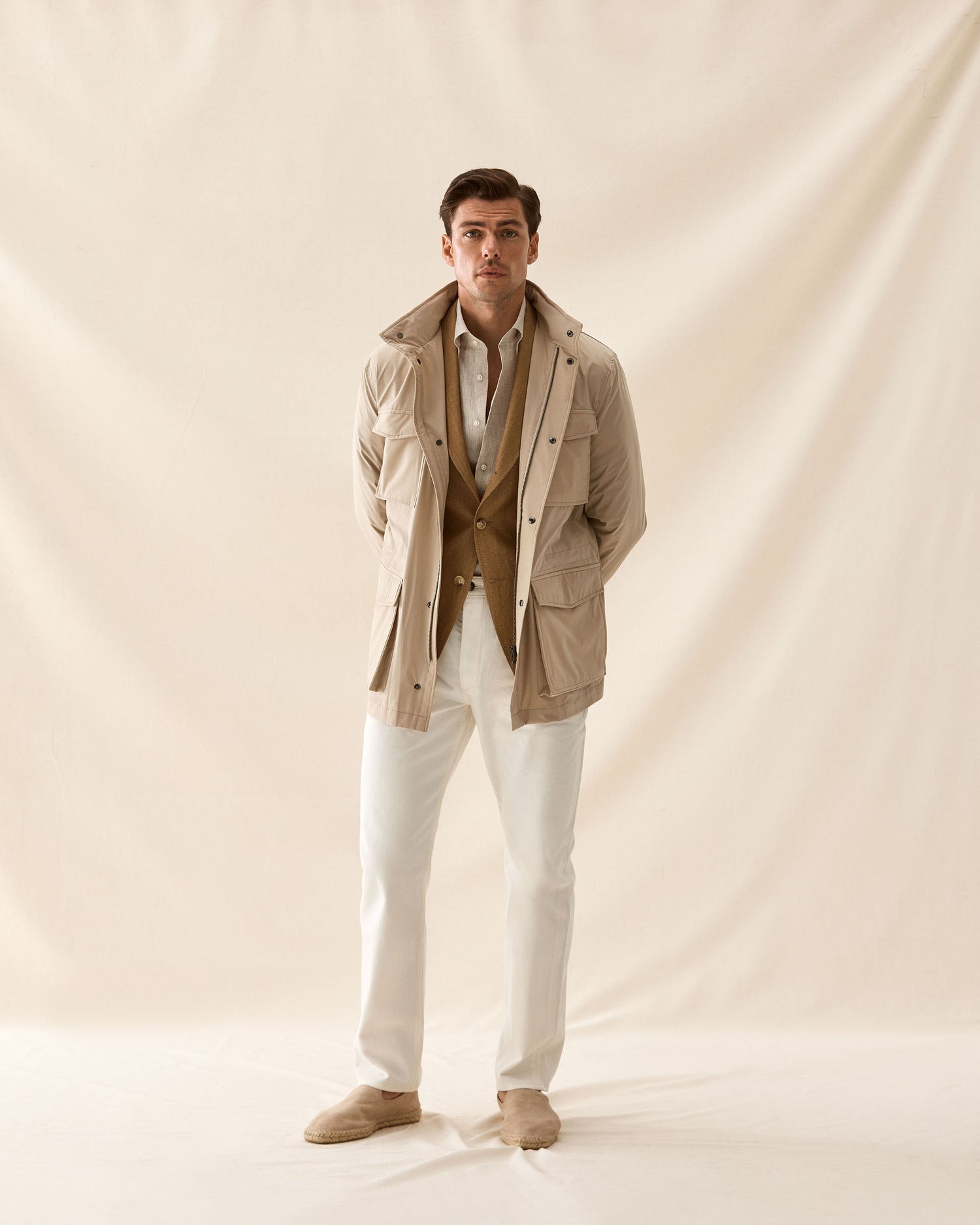 Denna version av vår älskade M65-siluett kommer i ett italienskt lätt skaltyg med lätt naturlig stretch och i en mångsidig nyans av beige. Tillverkad med tillräckligt många fickor för att bekvämt bära dina dagliga accessoarer och tillhörigheter.