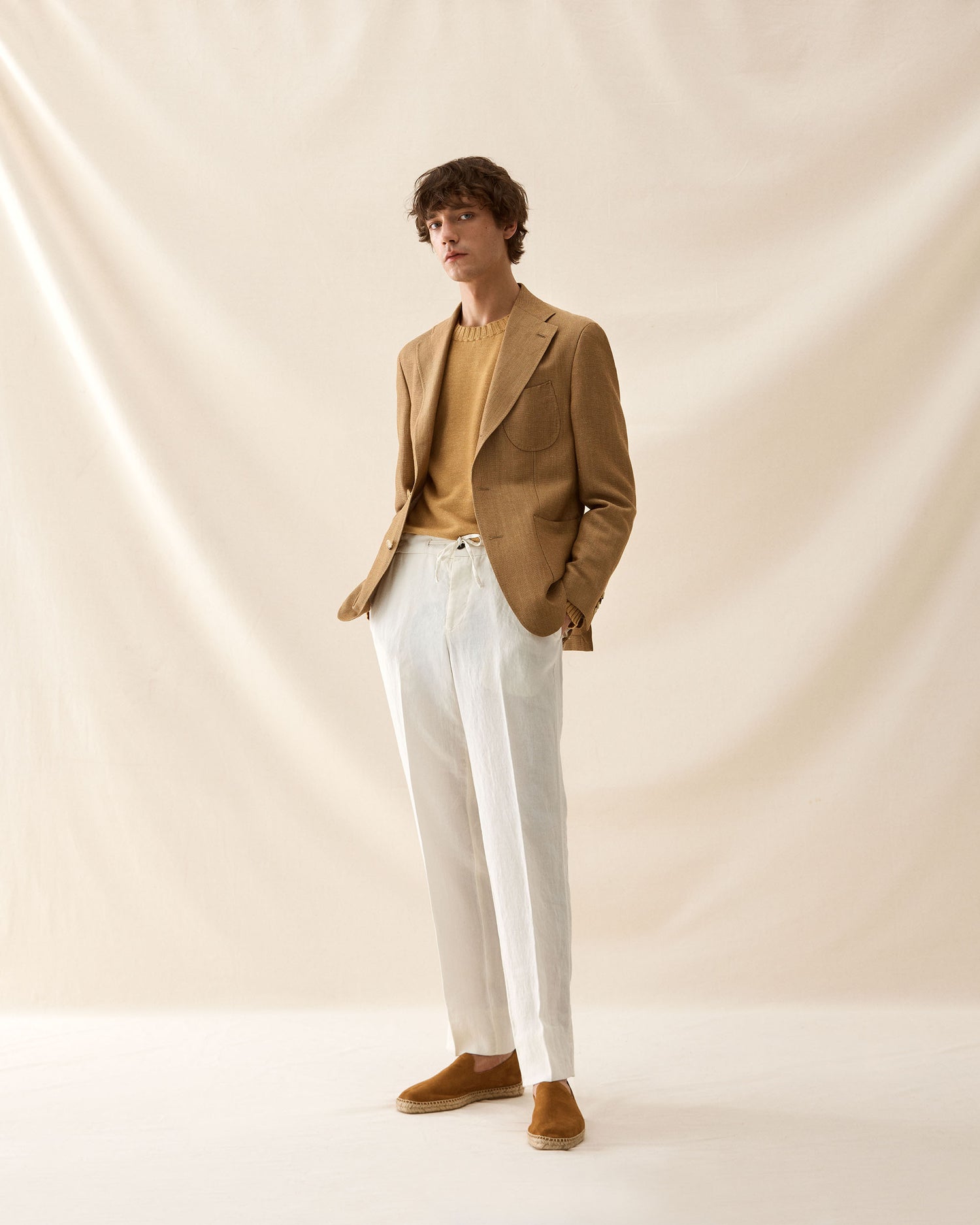 Säsongens kollektion fokuserar på bekväma, eleganta och luftiga plagg. Mycket uppmärksamhet har ägnats åt att ingjuta silke i ull- och linnetyger för att berika plaggen med extra djup och andningsförmåga.