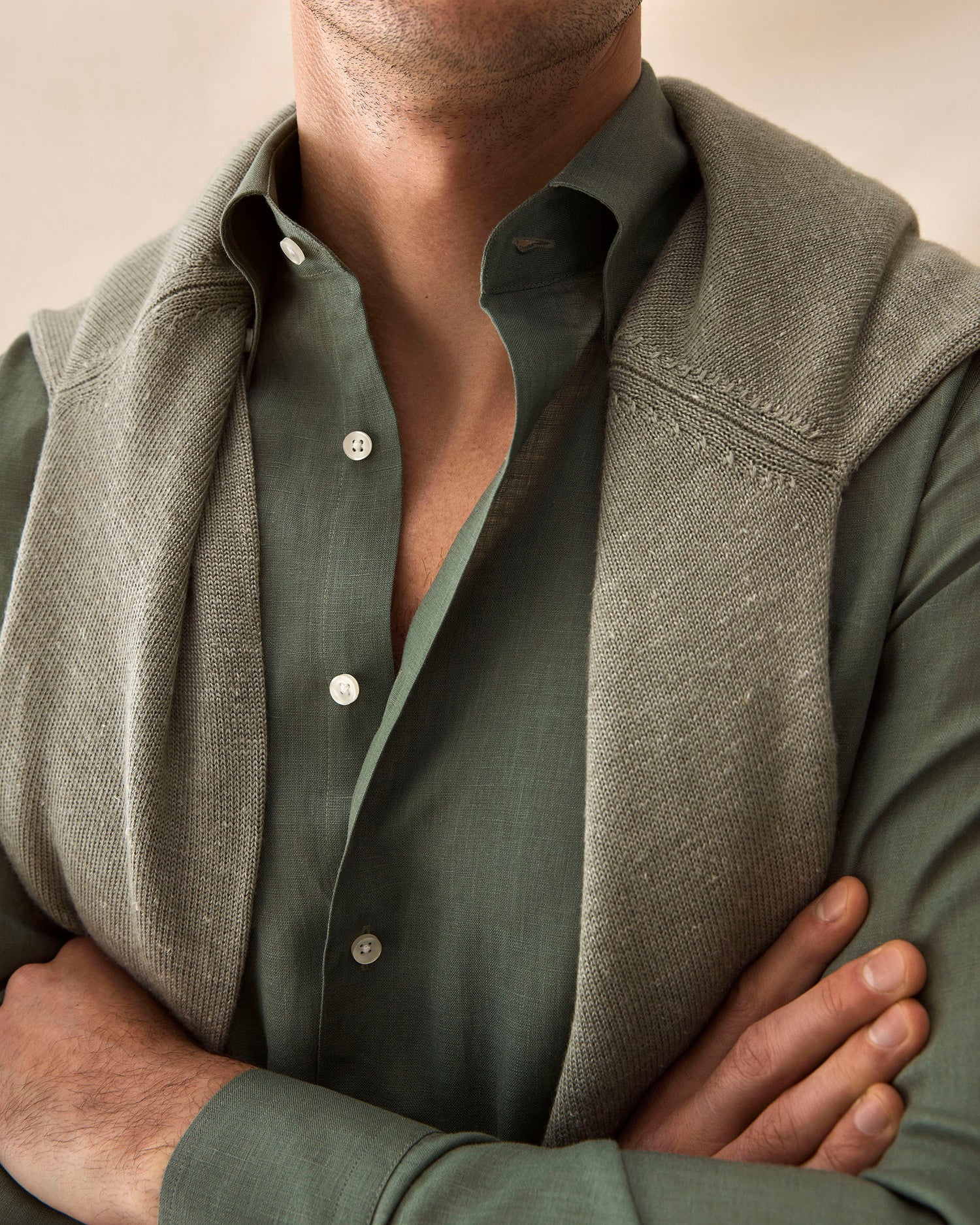 Säsongens button-down skjorta i linne kombinerar en traditionell kragstil med en avslappnad känsla och är ett naturligt smart-casual plagg under sommaren. Skjortorna bärs lika väl på stranden som till kostym på sommarens bröllop.