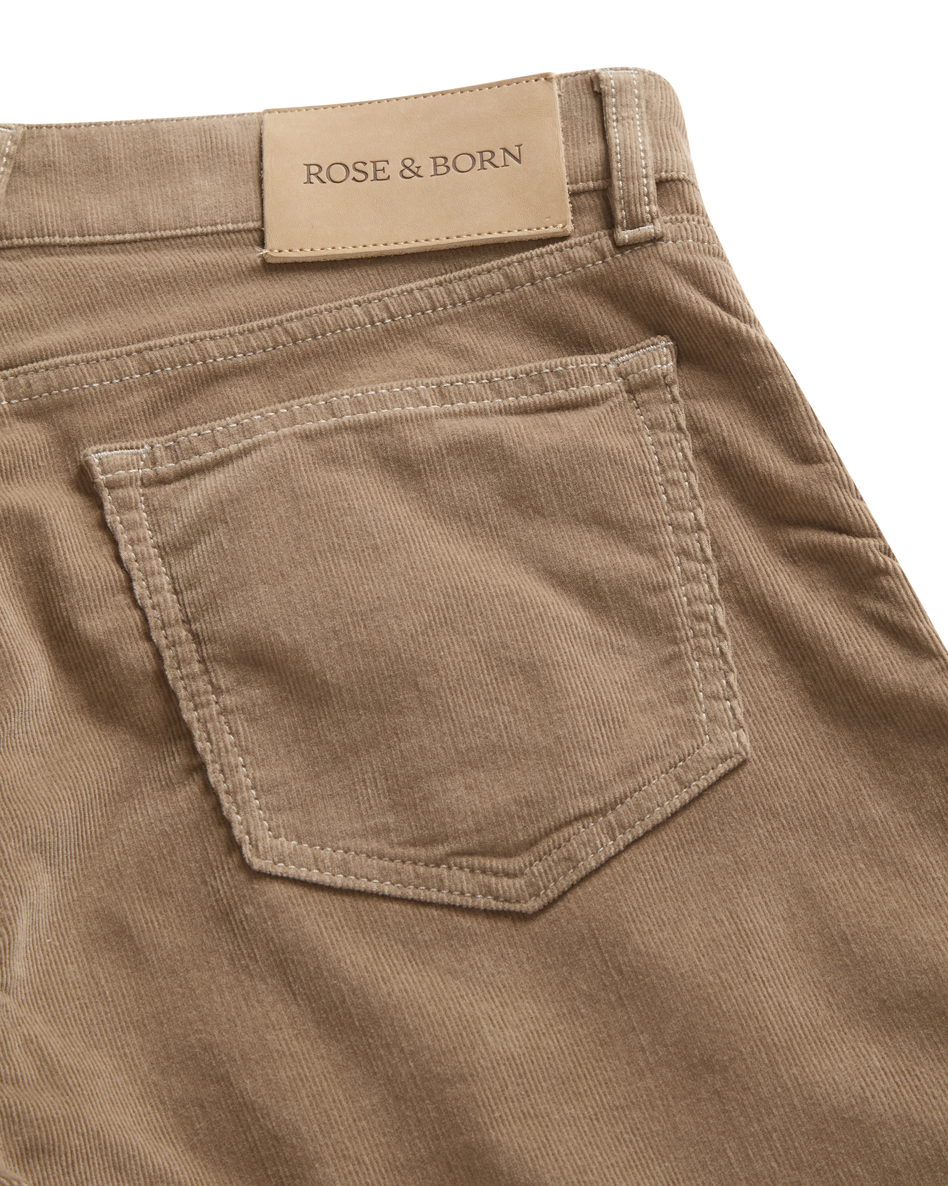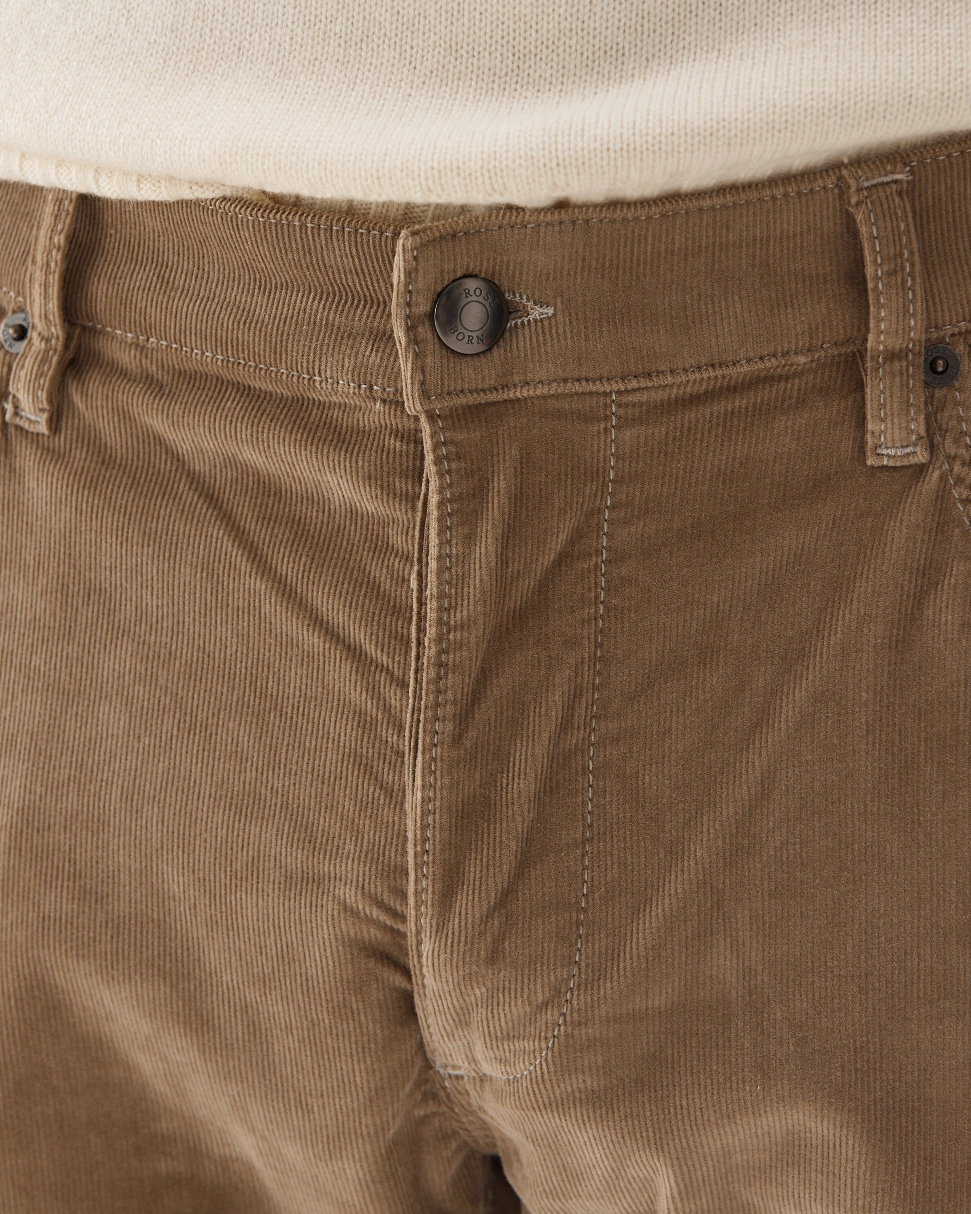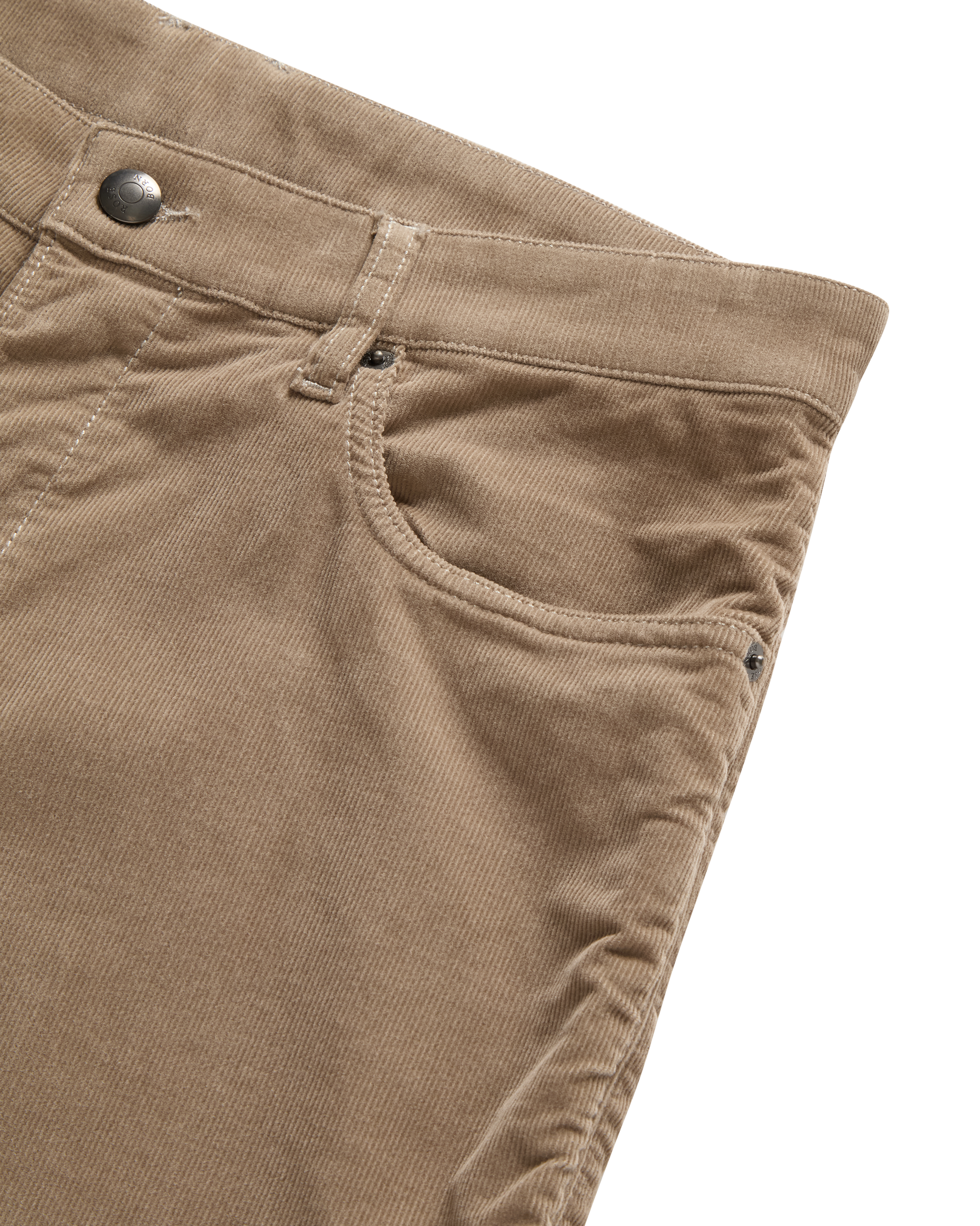 Dessa pincord-byxor är gjorda av ett mjukt och glänsande bomulls- och lyocelltyg. Våra jeans och 5-ficksbyxor är tillverkade i italienska tyger och schweizisk hårdvara. De kommer i en klassisk 5-ficksstil med ett smalt ben som är gjorda för att bäras med nästan vad som helst året runt. Modellen är 189 cm lång, väger 77 kg och bär storlek 32.