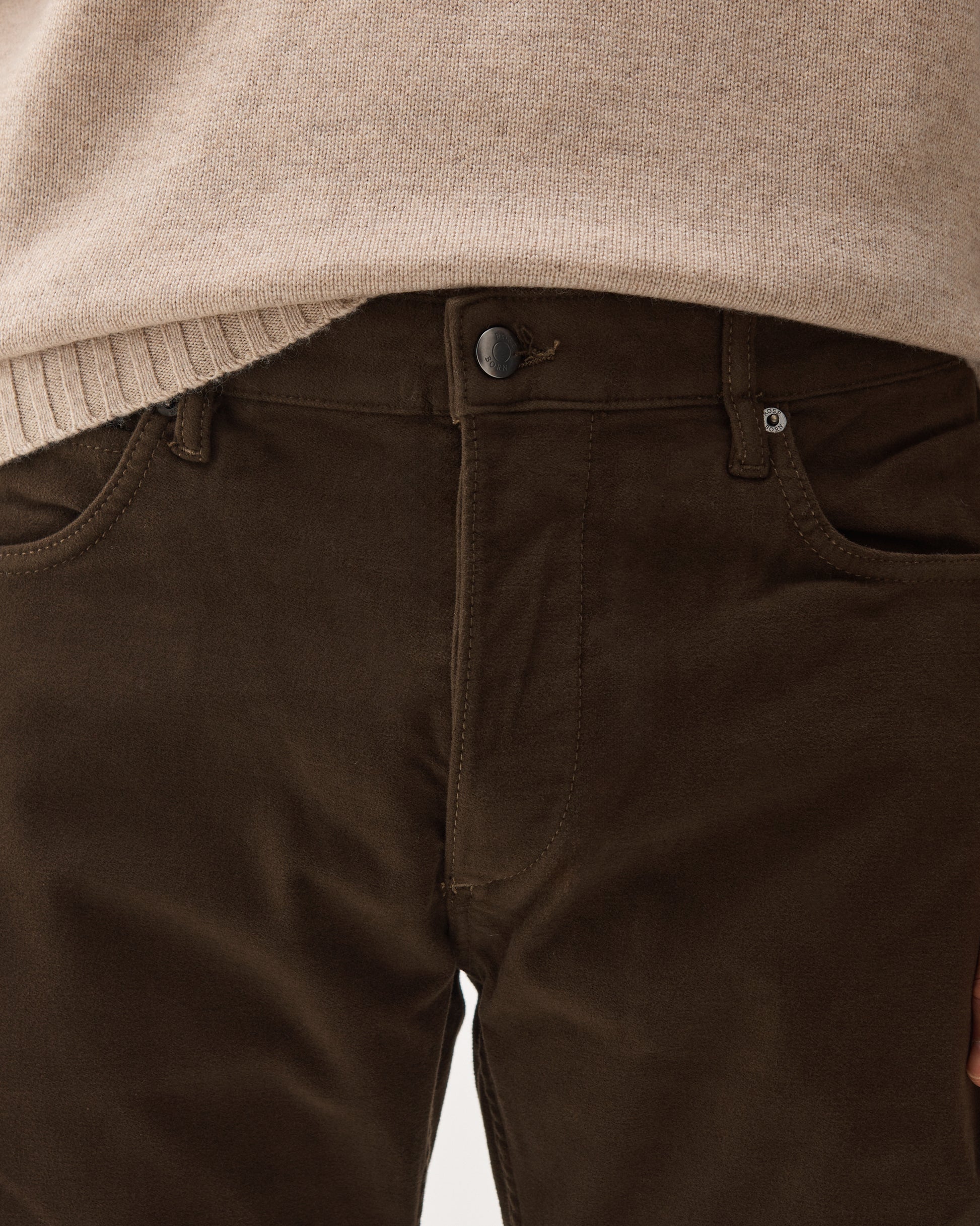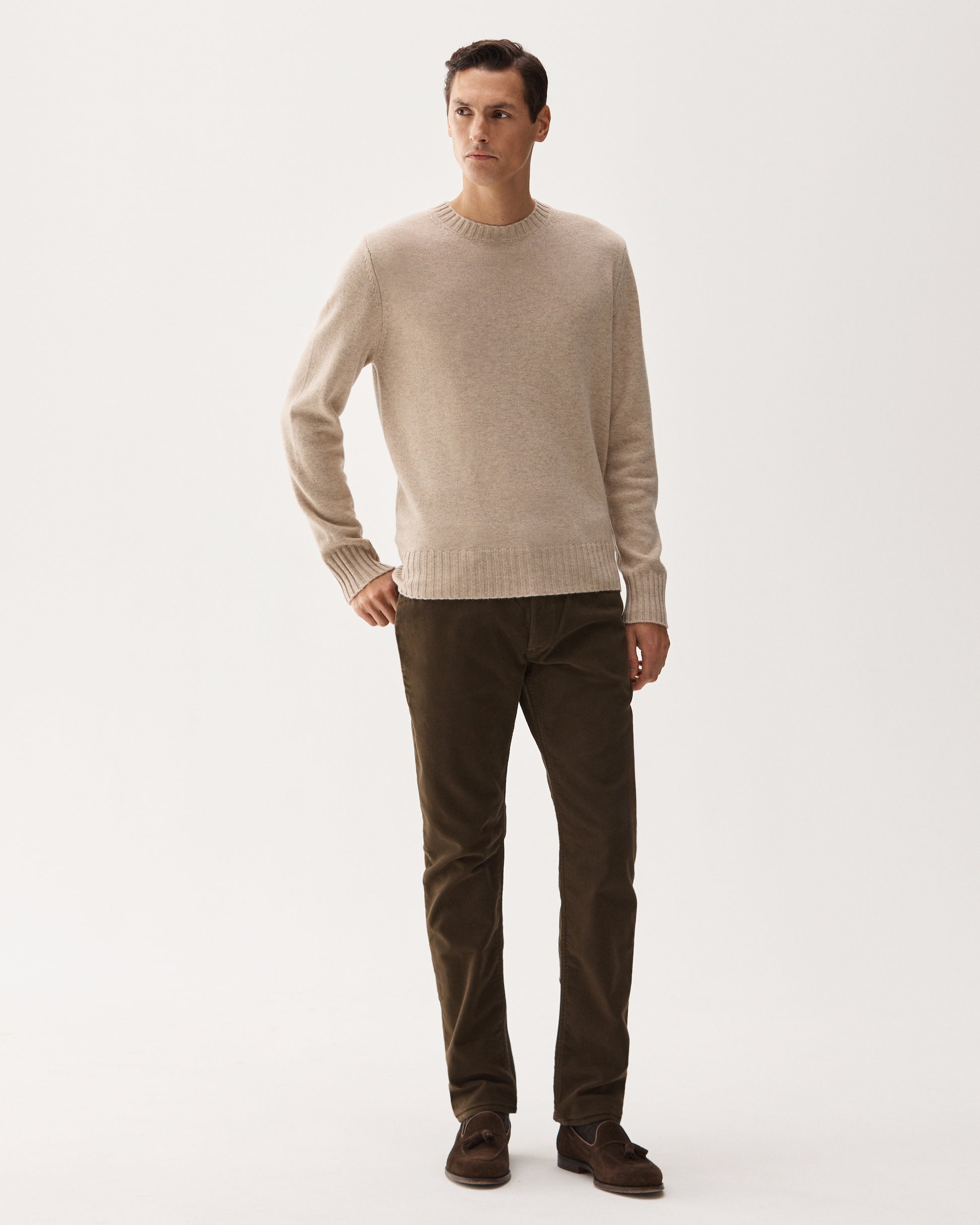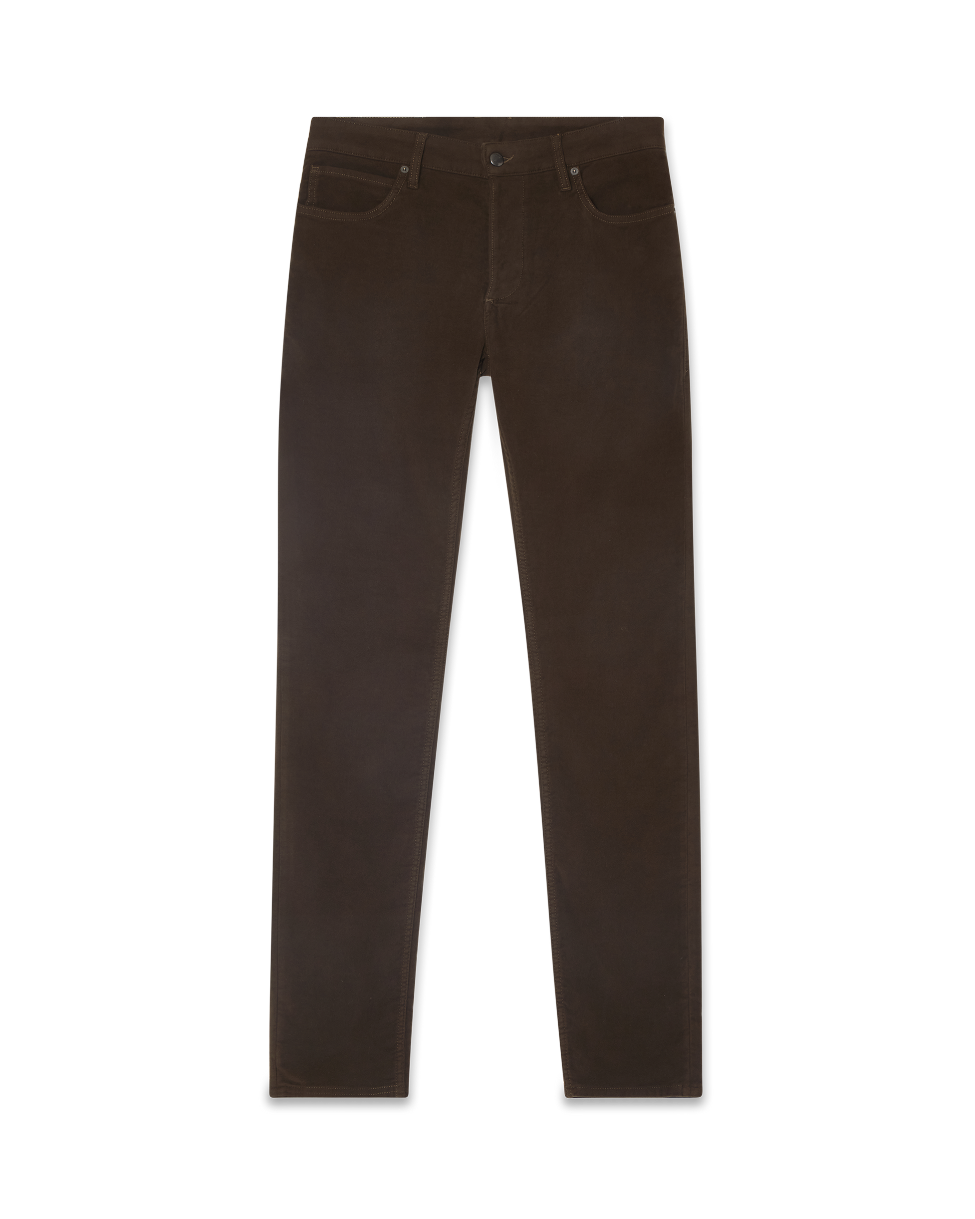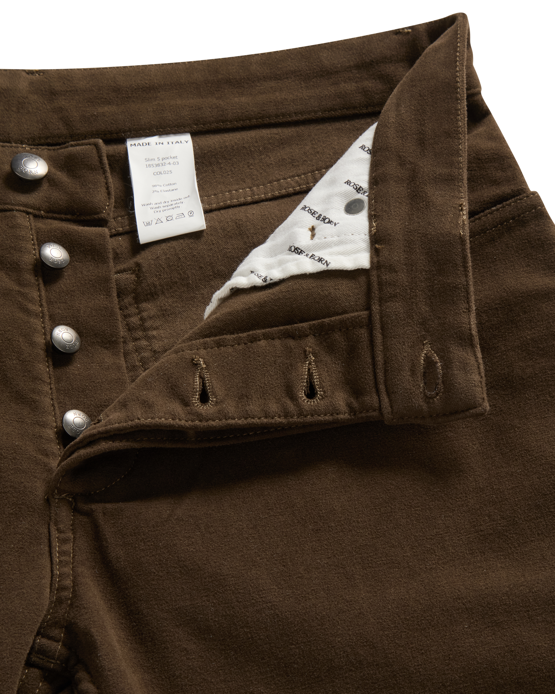 Våra jeans och 5-ficksbyxor är tillverkade i italienska tyger och schweizisk hårdvara. De kommer i en klassisk 5-fick stil med ett smalt ben som är gjorda för att bäras med nästan vad som helst året runt. Modellen är 187 cm lång, väger 75 kg och bär storlek 33.